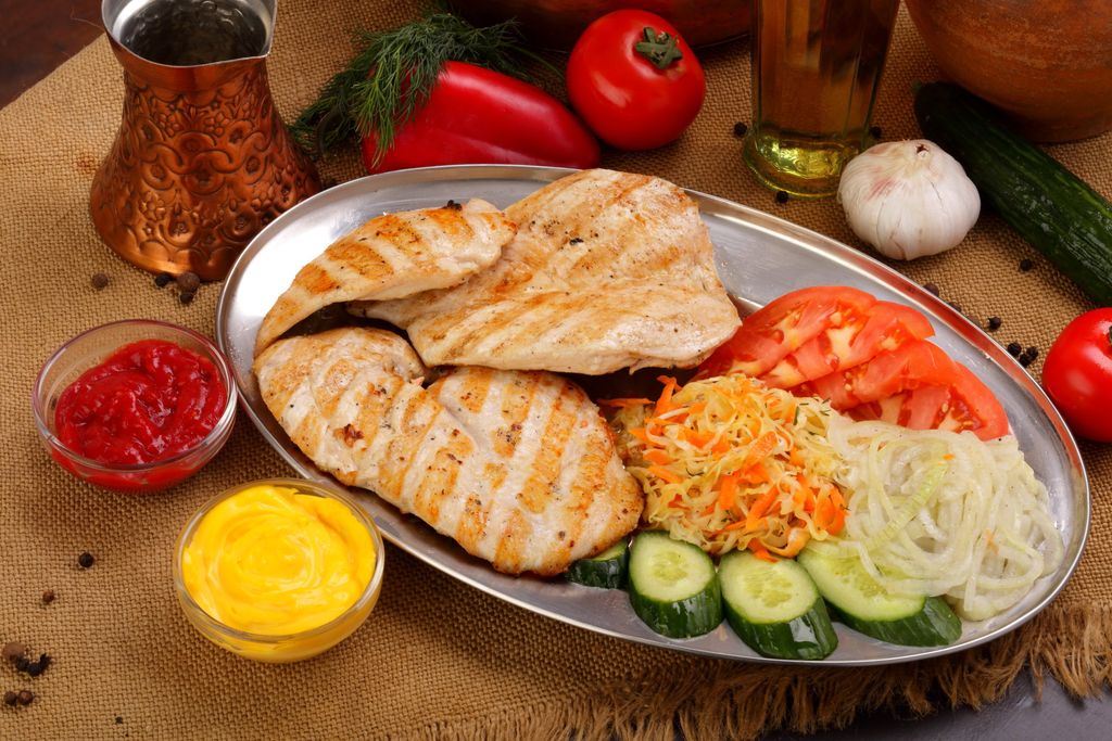 Гриль сет Куриное филе . Это блюдо для поклоников здоровой и вкусной кухни. Сочное филе поджарено на гриле ровно столько чтобы впитать все ароматы огня и при этом остаться сочным и низко калорийным.